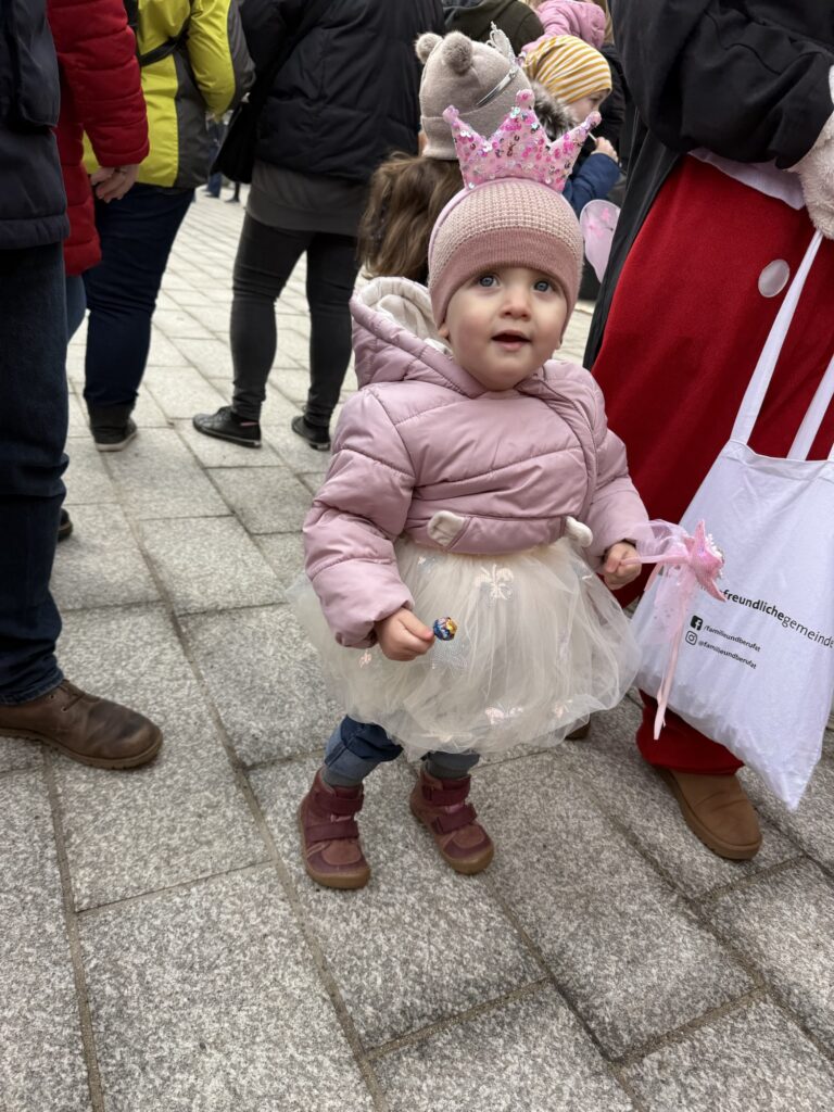 Vor dem Rathaus versammelten sich alle. Prinzenpaare, Gilden, Kinder in Kostümen – ein kleiner Clown, eine süße kleine Prinzessin …